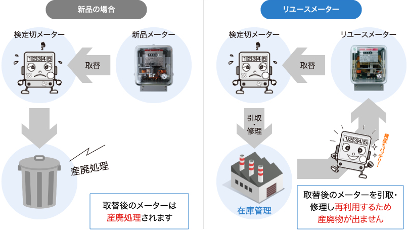 新品と異なり、リユースメーターは「エコマーク認定商品」ですので、企業イメージアップにもつながります。